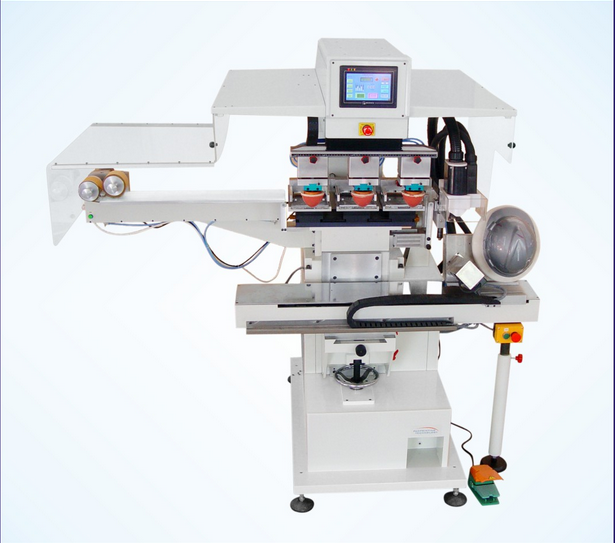YC300P八色轉盤移印機是為大工件的套色印刷而精心設計的一種印刷機。是一種通用型印刷機,能廣泛粗用于日常用品、玩具、電子、電器、塑料、皮革、金屬、玻璃、輕工業及食品包裝等各種行業中。